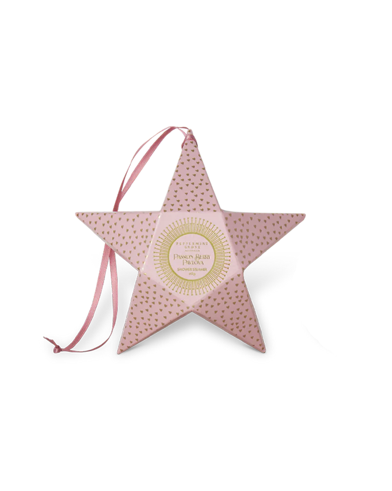 Elevate your shower routine with this limited edition hanging decoration. Open to reveal a limited edition Passion Berry Pavlova Shower Steamer 60g.