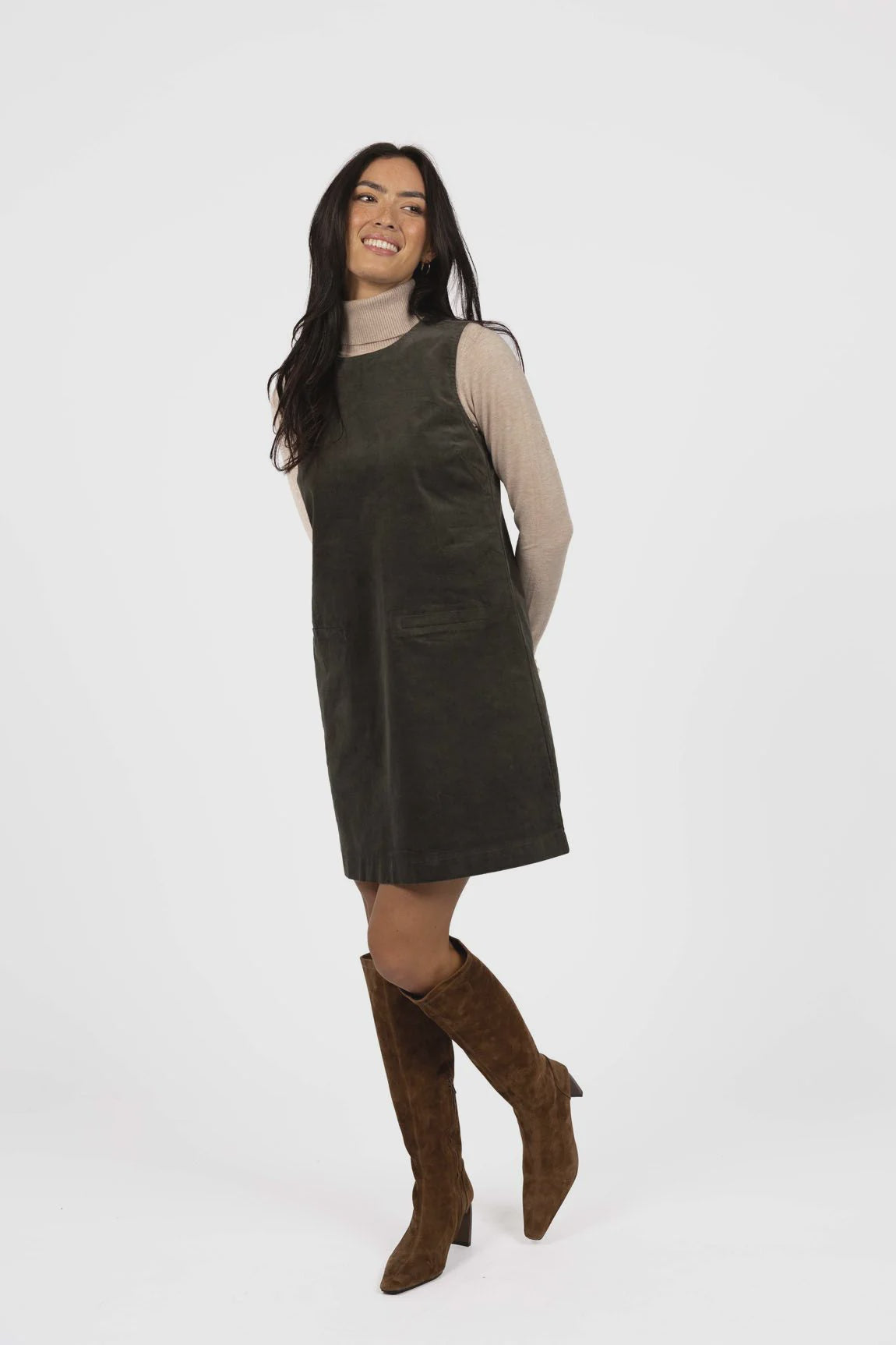 The Nova Cord Dress is the ultimate throw-on winter shift with a gorgeous retro feel. Crafted from soft stretch corduroy that feels lush to the touch, this piece is comfy enough for everyday wear while still looking polished and put together. The clean A-line silhouette is super flattering, and the sleeveless cut makes it perfect for layering.