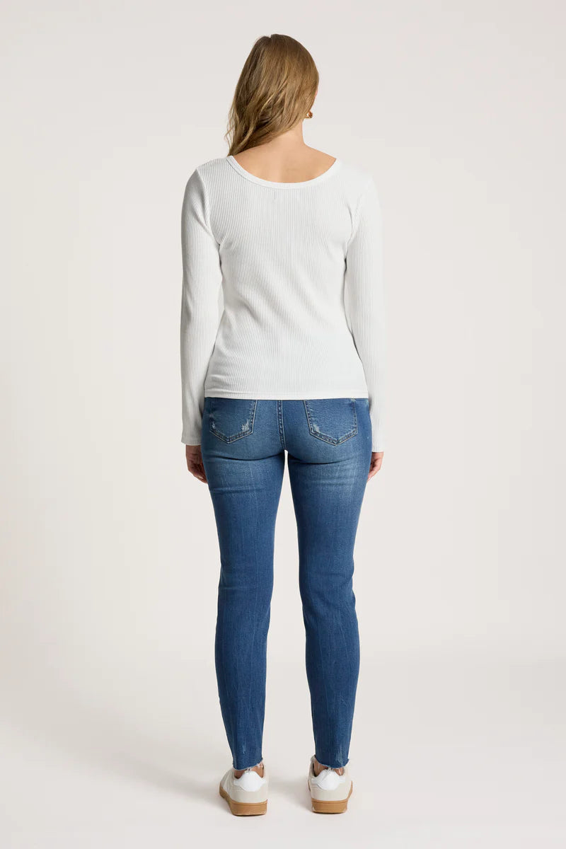 A refined everyday essential crafted from a cotton-rich rib knit. The Plage Long Sleeve T-shirt offers a clean, streamlined silhouette designed for layering or standalone wear. Soft, stretchy and timeless - an elevated wardrobe basic.