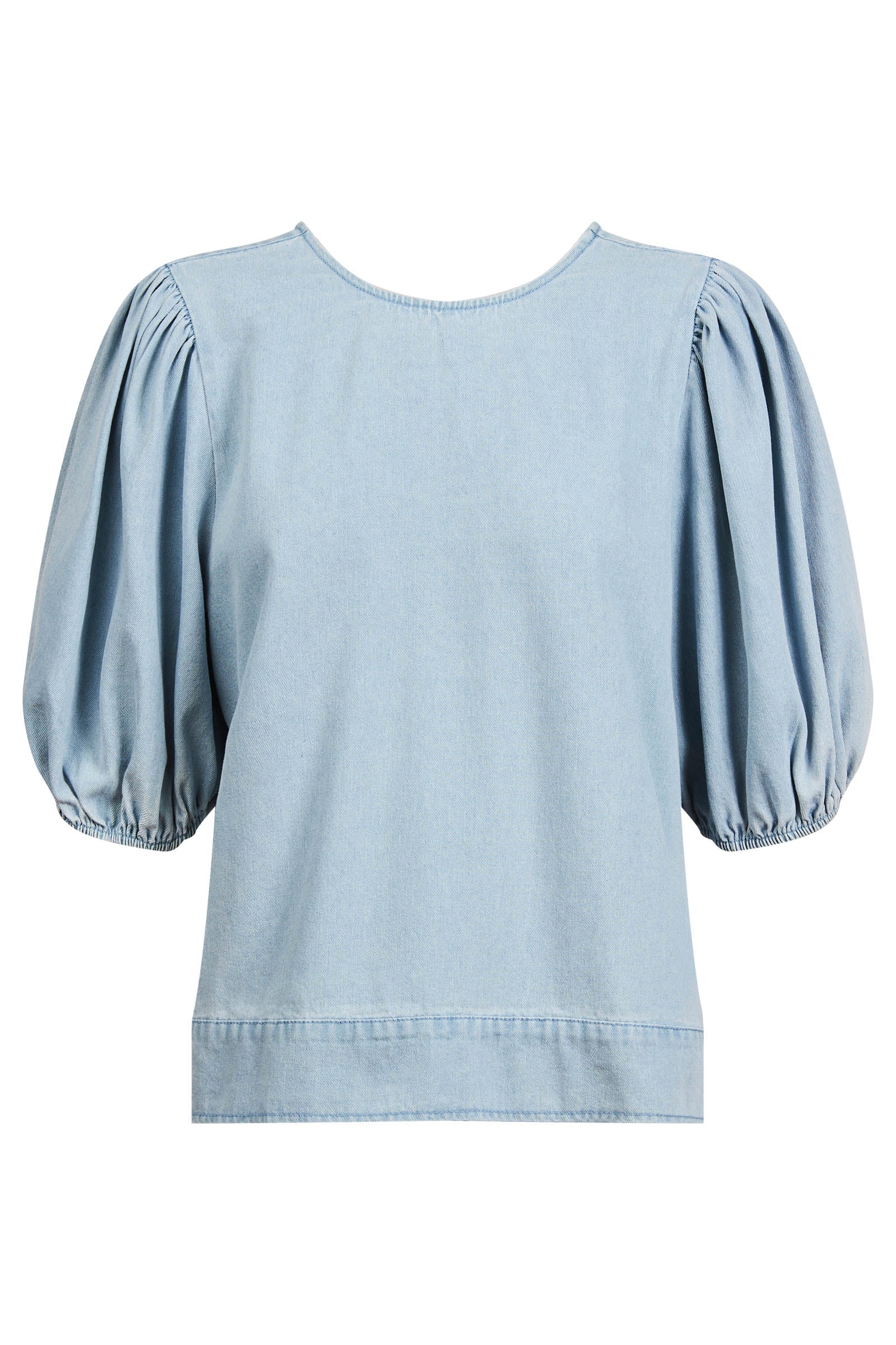 A versatile denim essential with a refined finish. Crafted from lightweight non-stretch denim, this top features a round neckline that dips lower at the back and puff sleeves with gentle volume. A wide hem with topstitch detailing adds structure to this effortless piece.