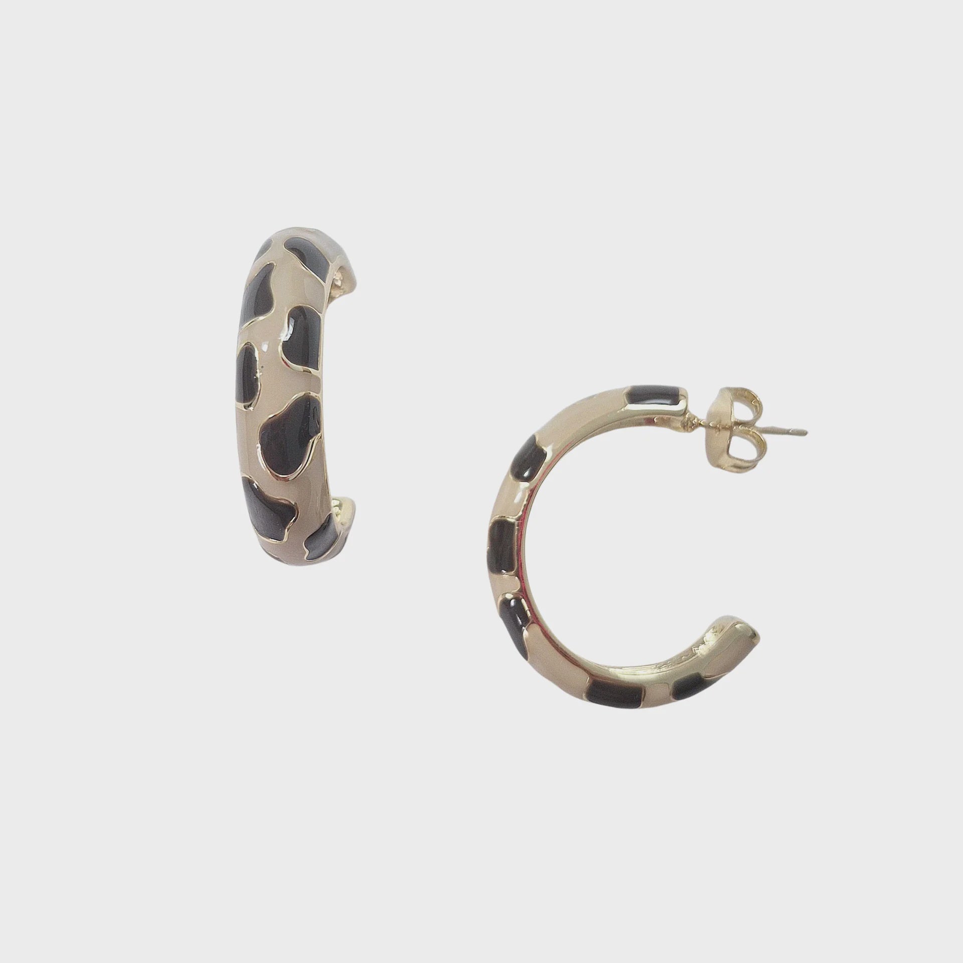 Cowprint Enamel Hoop Earring Tan