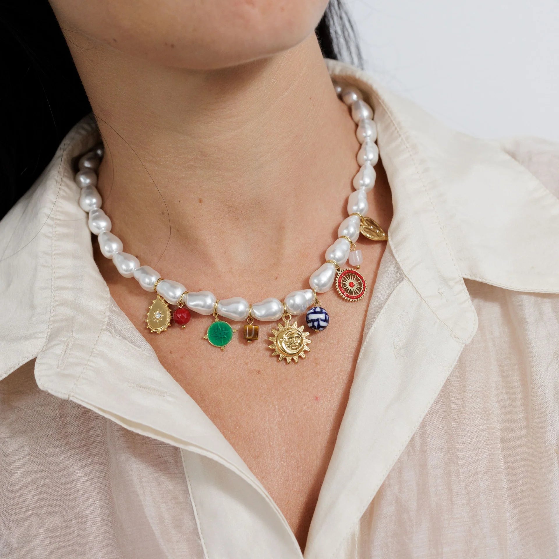 Marguerite Pearl Charm Necklace