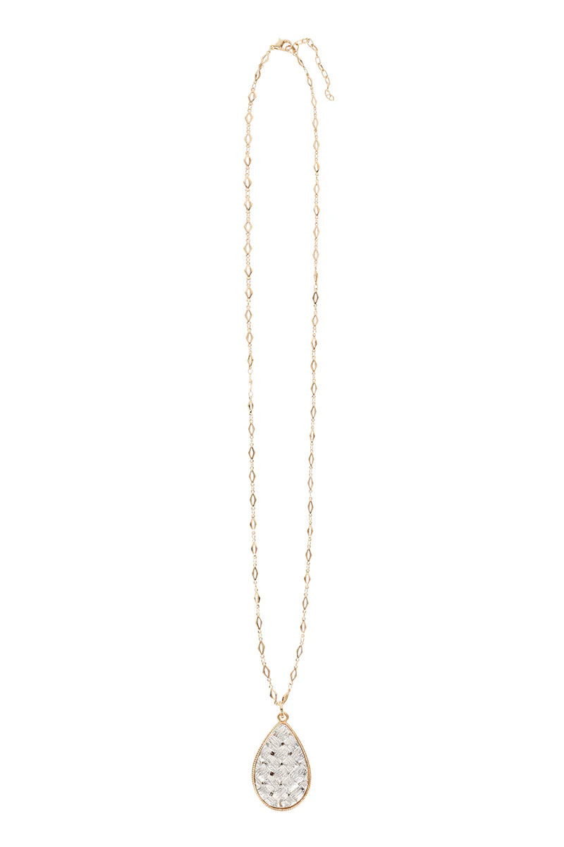 A longline necklace designed with subtle texture and an elegant teardrop pendant. A refined layering piece with modern appeal.