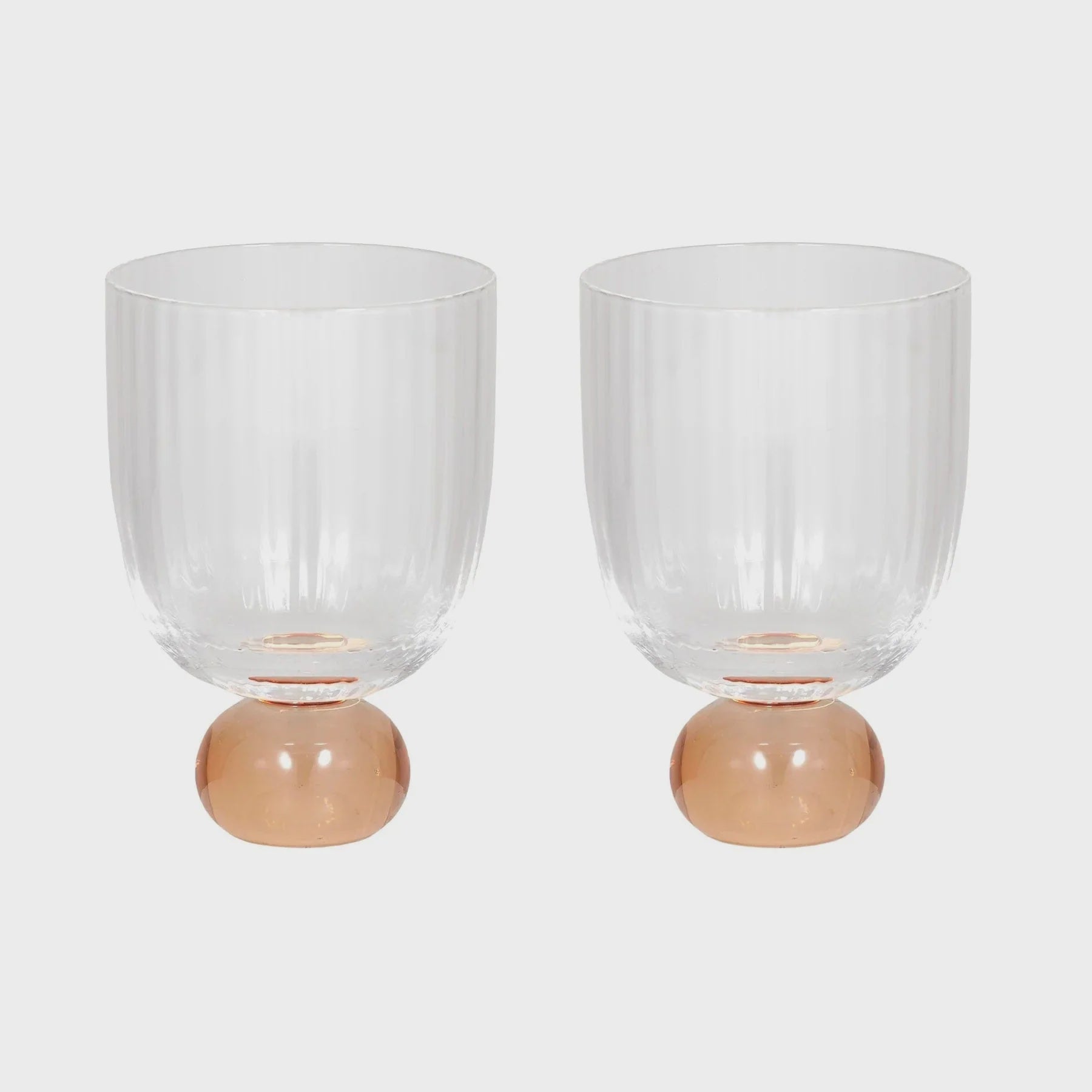 Available as a set of two, these stylish fluted glasses are generous in size with a modern "bubble" coloured glass stem in an ombre peach tone.