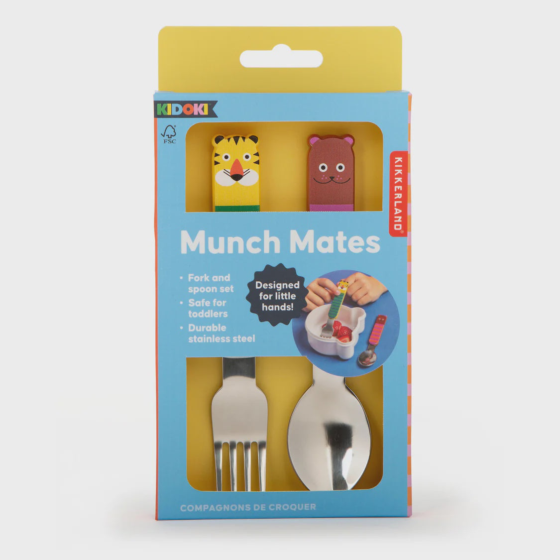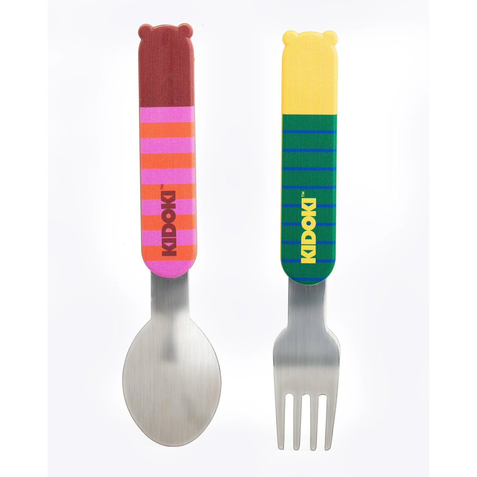 This colourful fork and spoon set makes mealtime fun for kids! Dishwasher and food safe