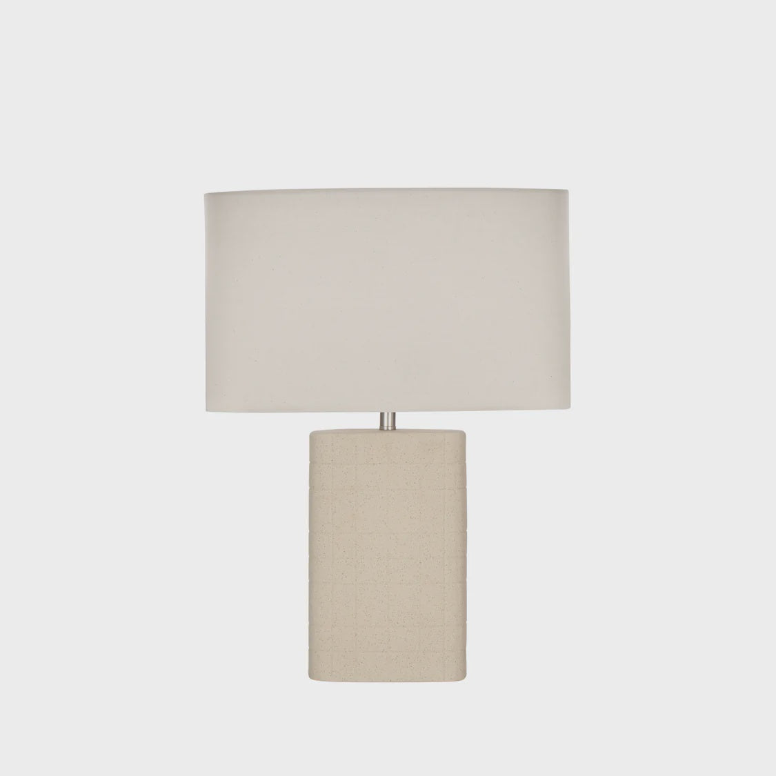 The Riva Table Lamp by Amalfi features a gridded design on the base for a stylish outlook. Nestled under a large drum shade, it's made in a classic natural hue that goes with everything in your collection.