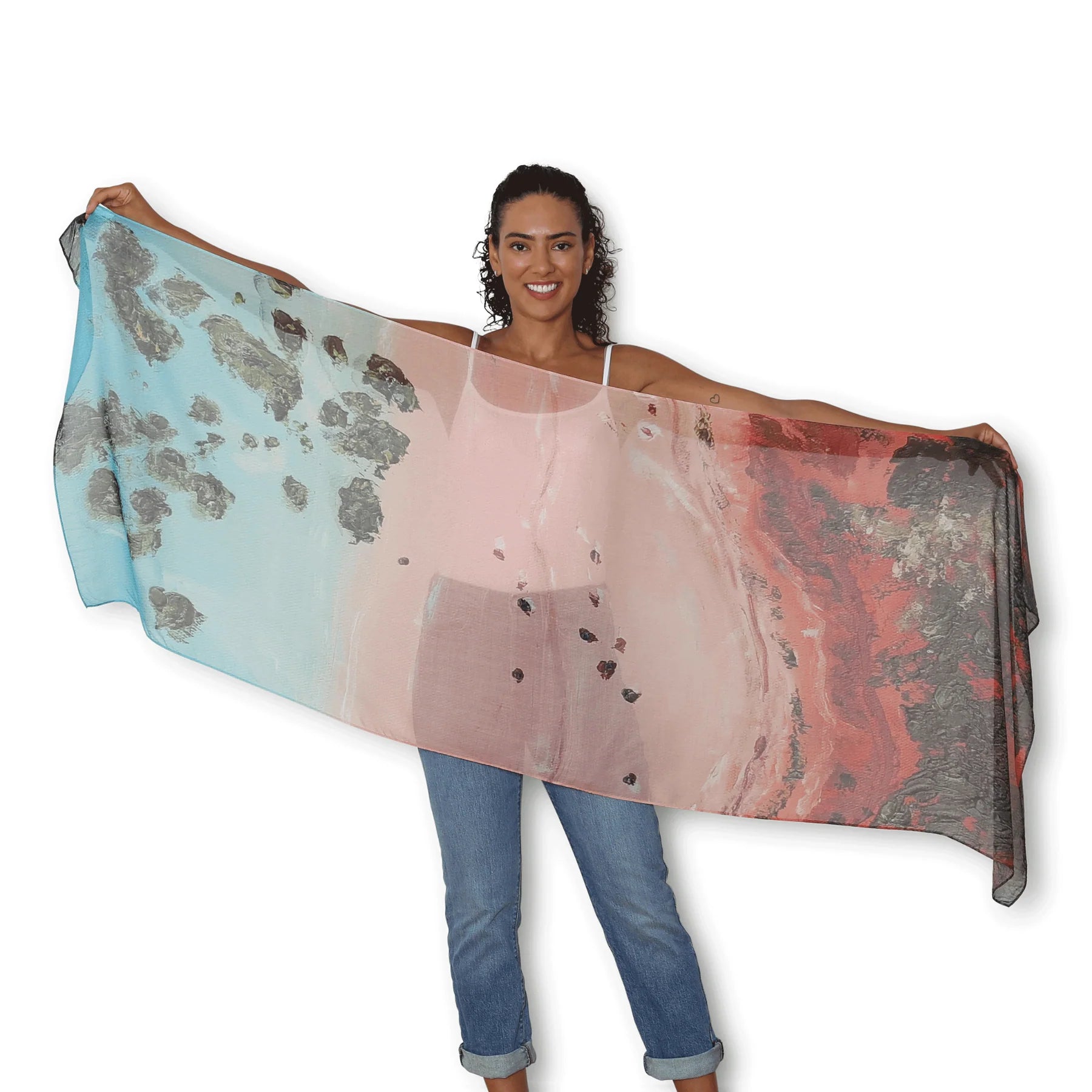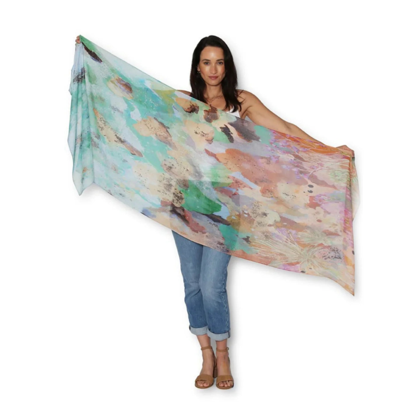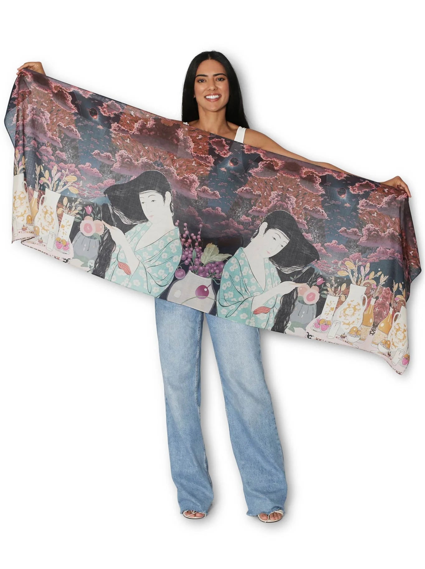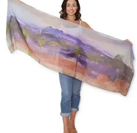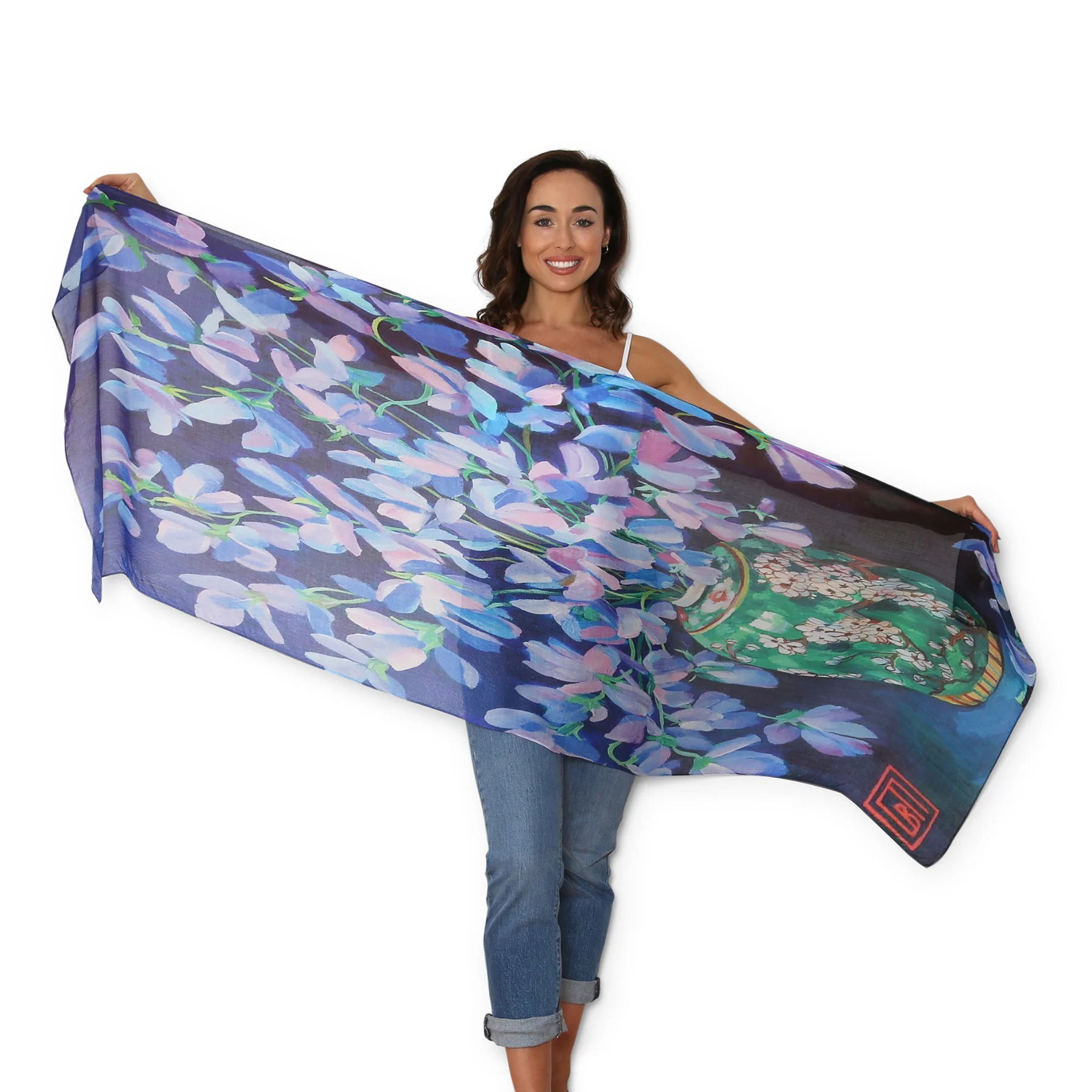 More details: Lightweight design, easy to carry around, rectangle shape, hand designed by a real artist. You can wear it as a scarf or head scarf too. All scarves come in a gift box and a hangtag with the story of the artwork and the artist's biography.