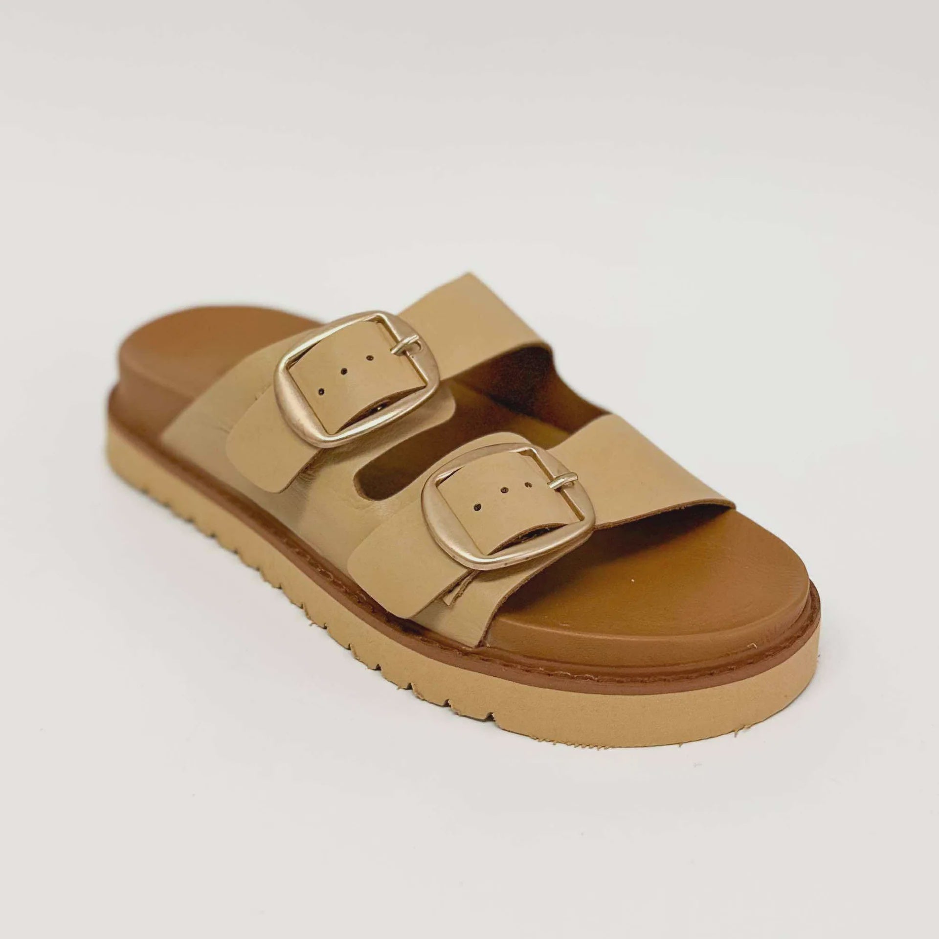 A stylish slide sandal designed for all-day comfort. Featuring a cushioned footbed, sturdy sole, and statement strap detailing, this versatile pair is perfect for effortless everyday wear. Dress them up or down—they’ll quickly become a go-to favourite.