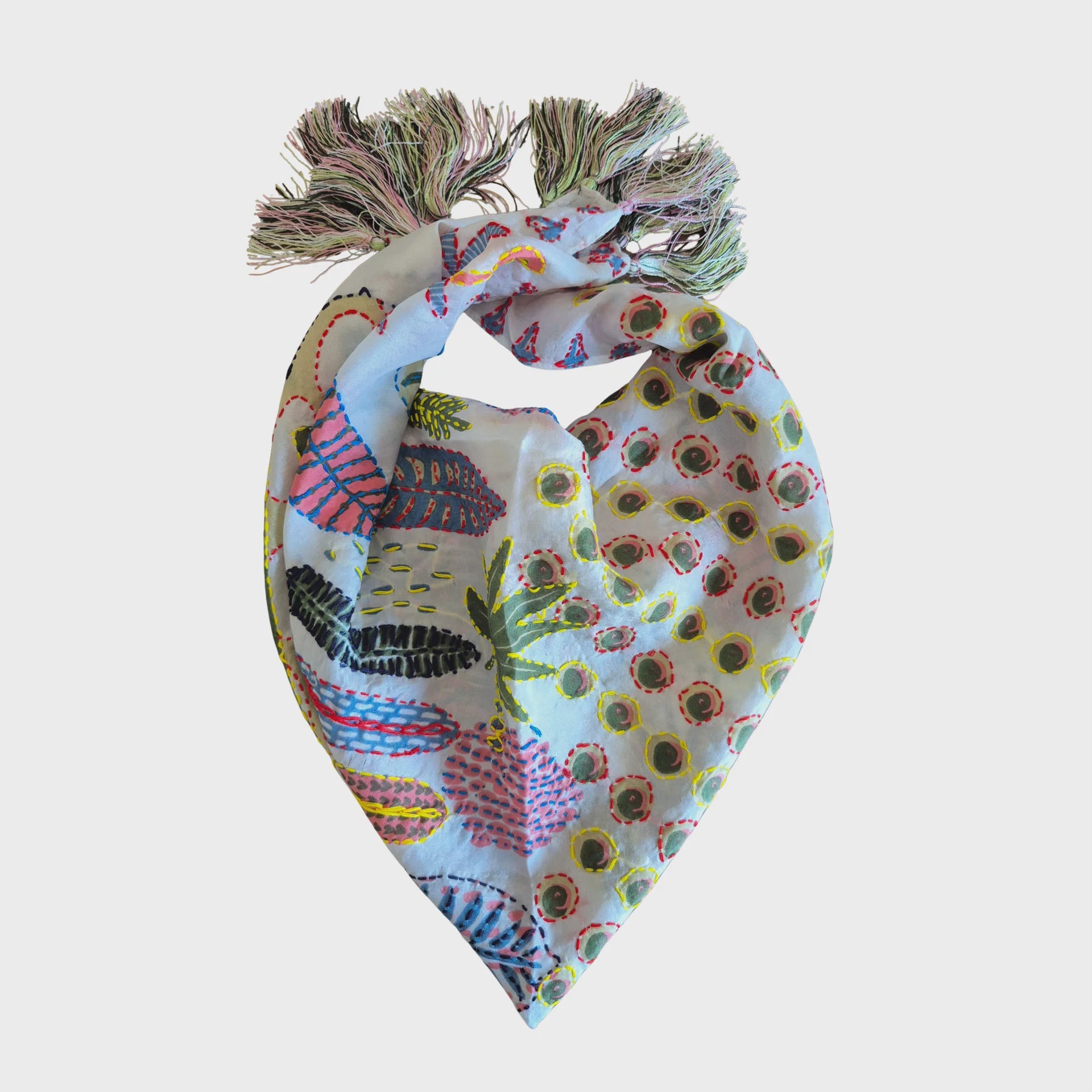 Monstera Pure Silk Scarf White