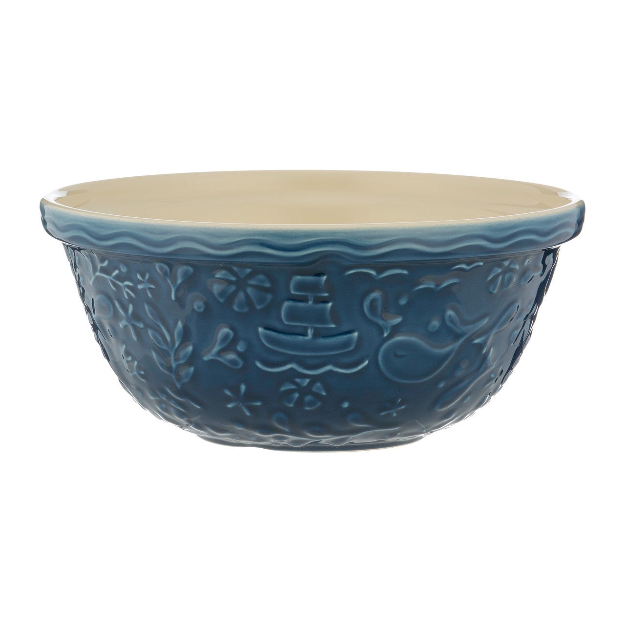 The large bowl has detailed embossments of salt and freshwater creatures in a vibrant navy blue colour, and the embossment also helps to grip the bowl when mixing.